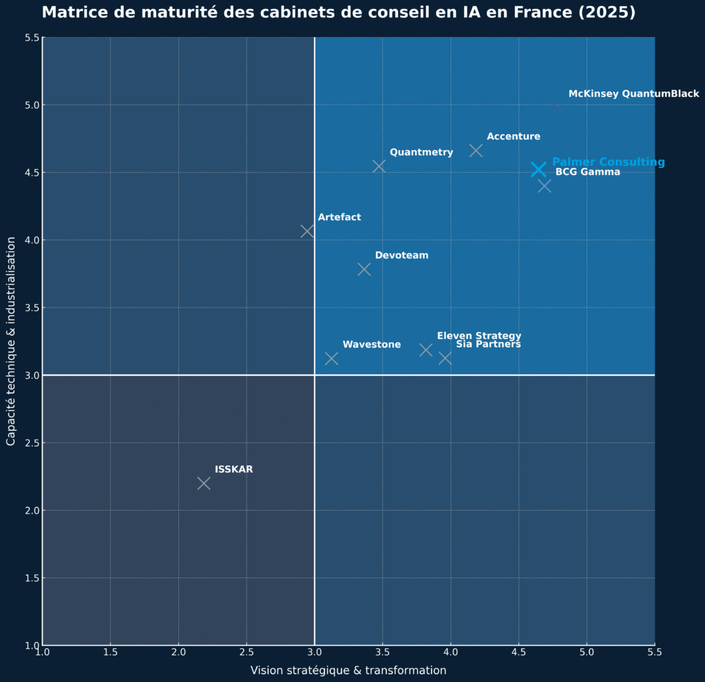 👉 Grâce à ce positionnement, Palmer Consulting se distingue comme le cabinet de conseil en IA en France qui combine expertise technique et vision stratégique, en accompagnant aussi bien les ETI que les grands groupes dans leur passage à l’échelle